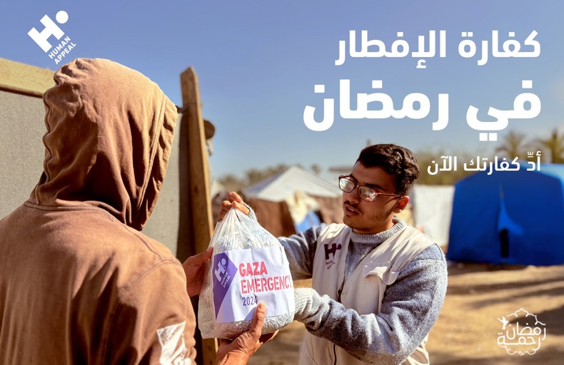 في هيومان أبيل نساعدك في إيصال كفارتك لمن يستحقها. ادفع كفارة إفطارك الآن عبر موقع هيومان أبيل في رمضان وساهم في إطعام المساكين في هذا الشهر الكريم. بفضل تبرعاتكم، نوفر الطعام والاحتياجات الغذائية الأساسية لعشرات العائلات المحتاجة، مما يُعيد إليهم الأمل ويدعّم صلتك بالله في هذا الشهر الفضيل.
